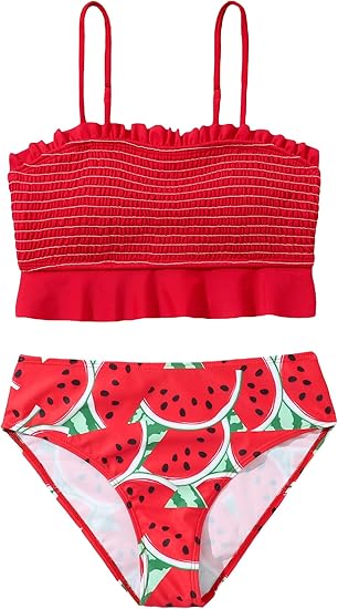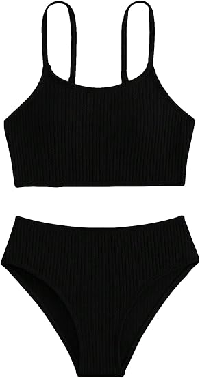 Girl's 2 Piece Bikini Swimsuit Ribbed Knit Spaghetti Strap Swimsuit Bathing Suit Beachwear