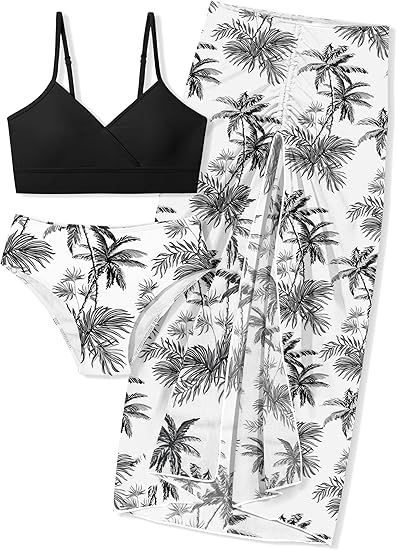 Girls Swimsuit Bikini Set 3 Piece Tropical Print Bathing Suit Quick Dry Cover Up Skirt Swimwear 7-16Y