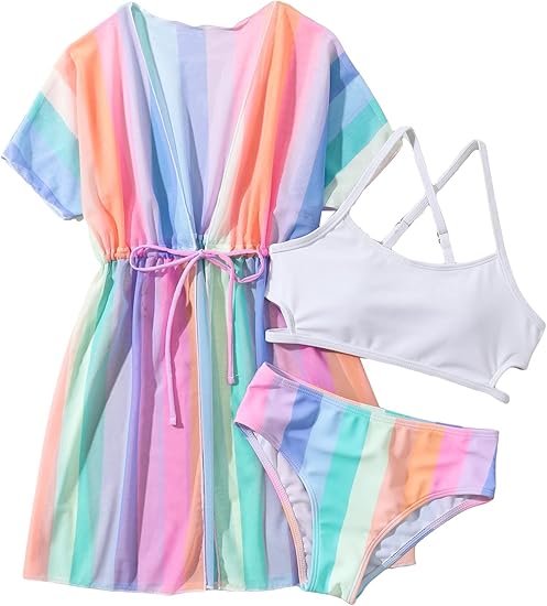 Girl's 3 Piece Bikini Sets Tie Dye Spaghetti Strap Swimsuit with Coverups