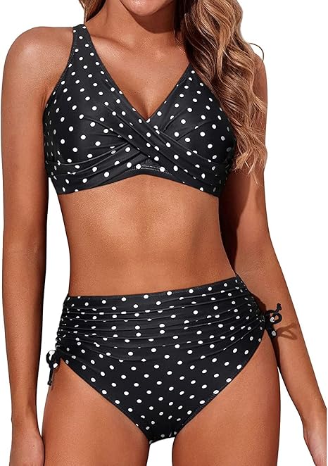 Women High Waisted Bikini Twist Front Swimsuits Lace up Bikini Tops Ruched Push up 2 Piece Bathing Suits