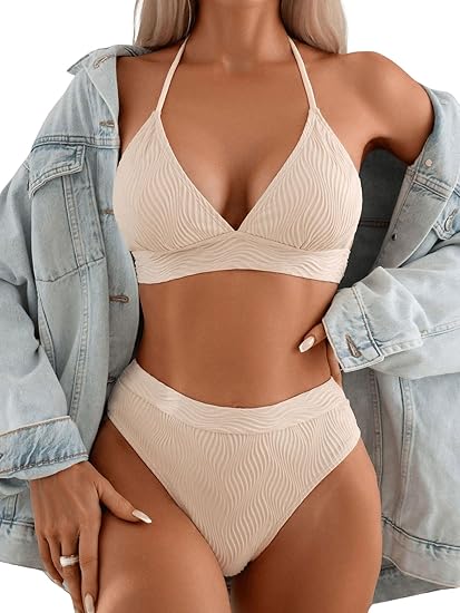 Women's Swimsuit Halter Bikini Sets High Waist Cheeky Thong Bathing Suit 2 Piece