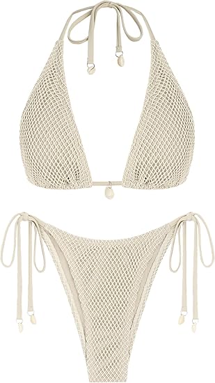 Women's Triangle Bikini Multiway Fishnet Tie Side Bandeau Halter String Bikini Set Two Piece Swimsuit Bathing Suits